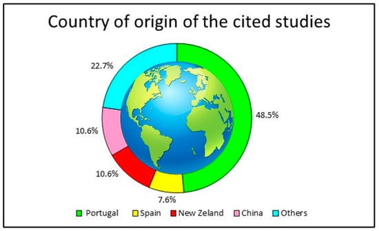 Figure 3 shows, in terms of percentages, the country of origin of the works cited in Section 2. As we can see in Figure 3, more than half of the works cited in this chapter were carried out in the Iberian Peninsula, followed by New Zealand and China.