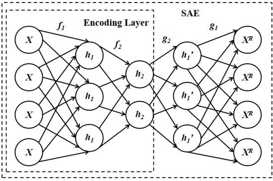 The principle of SAE is to utilize the input data X as a reference to guide the neural network to learn a mapping relationship that can reconstruct the data XR, where XR is an approximation of X. Hence, the feature h2 resulting from the dimensionality reduction of the encoding layer of SAE needs to retain all the information contained in the original feature X, enabling the reconstructed XR to approximate X. Building upon this, this paper proposes to apply the encoding layer of SAE for dimensionality reduction of the input features, as illustrated in Figure 2.