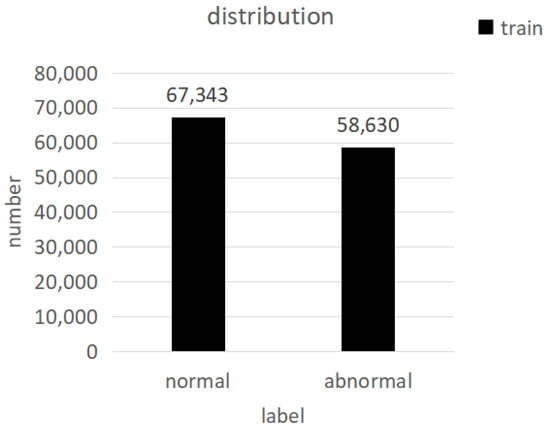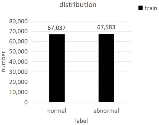 The distribution of normal and anomalous samples in the training set of the NSL-KDD dataset is highly imbalanced, with only a small proportion of samples being abnormal. The distribution is presented in Figure 6. To address this issue, the hybrid sampling strategy of KNN under-sampling and Borderline-SMOTE over-sampling is used to balance the dataset. After hybrid sampling, the ratio between normal and abnormal samples in the dataset was balanced at 1:1. The distribution of normal and abnormal samples after hybrid sampling is shown in Figure 7.