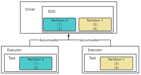 The Spark accumulator summarizes data about variables on the Executor side of a cluster to the Driver side. As shown in Figure 4, the accumulator of the Driver side is first serialized and sent to the Executor. Then, the accumulator is used in the Executor to collect data. Finally, the accumulator of each Executor is obtained at the Driver end and the accumulator is merged by the Merge function to obtain the final result.