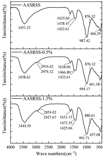 FTIR results of AASRSS samples at the age of 28 days.