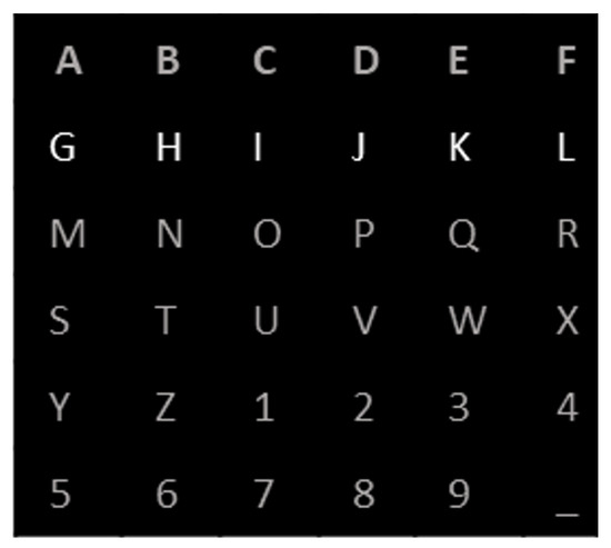 Besides its application in neurology, P300 is often used in BCI research as a signal to detect the user’s intention or decision-making process. This is completed by presenting a series of stimuli to the subjects, whose brain activity is monitored, to determine if they are focusing on a specific stimulus that corresponds to a particular command or action. Thus, due to the aforementioned reasons and being user-friendly, P300-based tasks are typically used in BCI that helps people with neuro-motor disabilities. The Matrix Speller is the first BCI based on the P300, which can transmit 7.8 characters per minute [10,11]. Following its introduction, the performance of P300-based BCI was significantly improved using different paradigms and powerful algorithms [12,13]. This speller uses a 6 x 6 matrix of letters that are highlighted in a sequence while the subjects focus their attention on the letter they want to communicate.