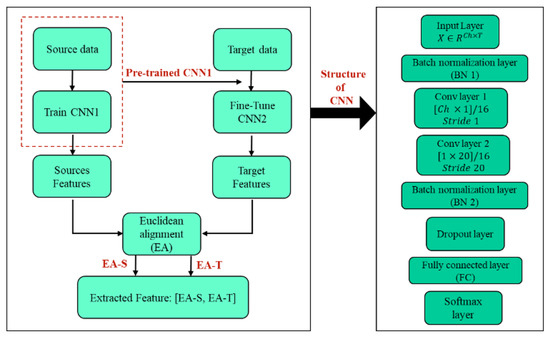 The utilization of a TL-based EA method (Euclidean alignment block) facilitated the alignment of these feature blocks, thereby ensuring that they had similar distributions. Further details regarding the technique are explained in the following sections.