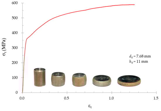 Compression true stress–compression true train curve of AISI 1010 using the compression test at room temperature.