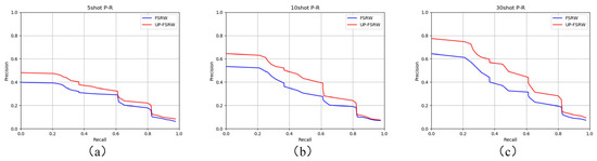 P-R comparison graph. (a) 5-shot P-R comparison graph. (b) 10-shot P-R comparison graph. (c) 30-shot P-R comparison graph.