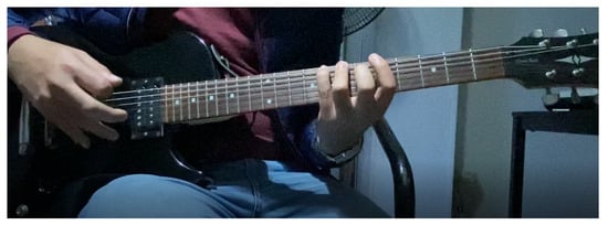 In the early 2000s, researchers began to classify finger positions using different hardware to address this issue [15]. In [16], image segmentation was conducted to recognize both chords and note frequencies. A few years later, with the introduction of the Microsoft Kinect sensor, researchers also tried using the Kinect in the context of multiple proposed solutions; for example, in [17], the Kinect was used to capture an expert’s motion and compare it to a trainee’s motion. Additionally, researchers have trialed the use of wrist-worn gloves to facilitate finger motion tracking, which [18] utilized in their proposed method to help players improve their strumming technique.