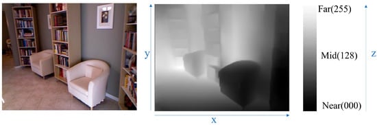 RGB image with its respective depth map. X and Y show the dimensions of the image, while z represents the depth of the scene.