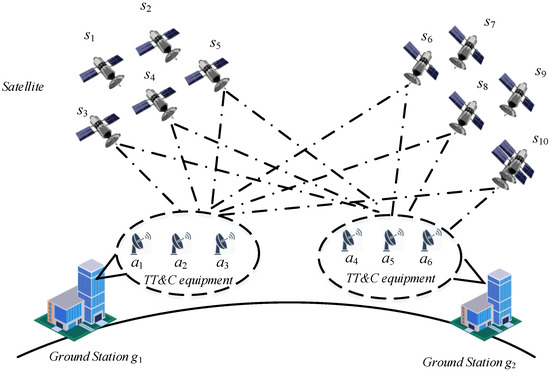 The satellite tracking, telemetry, and command (TT&C) system is utilized to transmit the telemetry and telecommand data and determine the satellite orbit [1]. With the development and construction of prominent satellite constellations such as Hongyun and Hongyan in China [2], the number of satellites in space has rapidly increased [3,4], resulting in an increasing TT&C demand for space networks. On the other hand, due to the long construction period, high cost, and constraints of national borders, the number of ground stations is relatively limited, resulting in a lack of available TT&C resources. Therefore, more severe resource conflicts will be encountered in TT&C task planning, which also brings more significant challenges to the TT&C resource management of space networks.