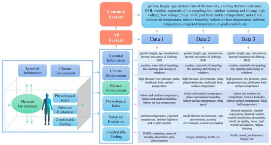 The datasets are collected at different time spans, and the features still have similarities or differences over time. The associations between similar features (shared features) and different features (extra features) are clarified to characterize their impact on the final personal comfort.