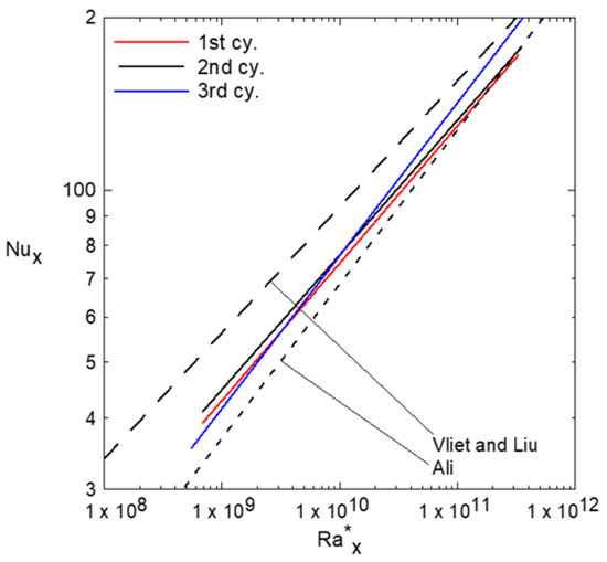 - Vliet, G.C.; Liu, C.K. An experimental study of turbulent natural convection boundary layers. J. Heat Transf. 1969, 91, 517–531. [Google Scholar] [CrossRef]