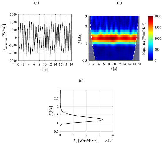 - Steps 2–4 are iteratively replicated by varying the cut-off frequency until the evaluated residual equals the standard deviation of the raw temperature data, σ = 0.04 K (i.e., fulfilment of the Morozov’s discrepancy principle [31]).