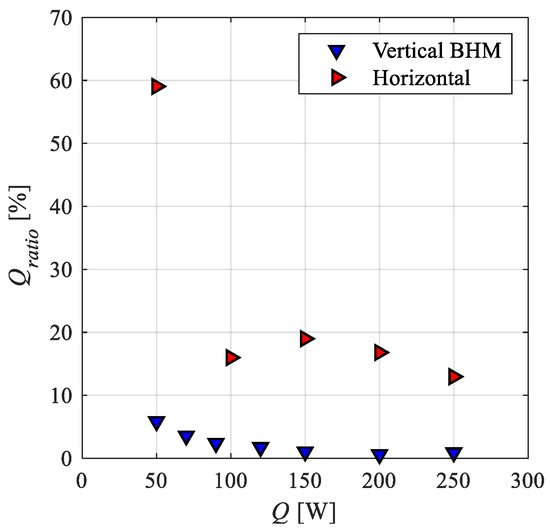 - The heat transferred by conduction between adjacent channels is higher in the horizontal orientation, where Qratio ranges from about 60% at low heat loads to 15% at high heat loads;