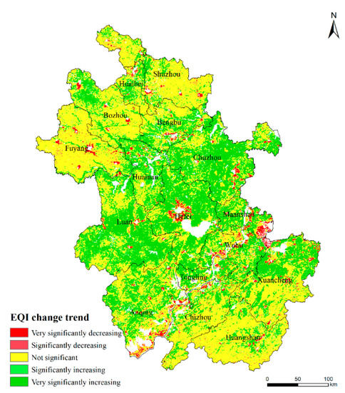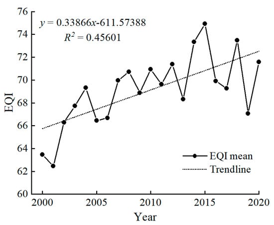 Trends of EQI during the growing season in Anhui Province from 2000 to 2020.