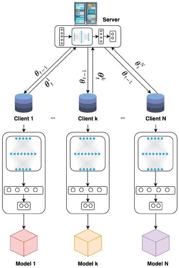 - Brendan McMahan, H.; Moore, E.; Ramage, D.; Hampson, S.; Agüera y Arcas, B. Communication-Efficient Learning of Deep Networks from Decentralized Data. In Proceedings of the 20th International Conference on Artificial Intelligence and Statistics, AISTATS 2017, Fort Lauderdale, FL, USA, 20–22 April 2016. [Google Scholar] [CrossRef]