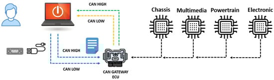 Advanced technology in the automotive industry has led to an increase in the number of vehicles that are connected to external devices and services, making them susceptible to attacks. This includes the use of wireless connections, such as Bluetooth, Wi-Fi, and mobile phone networks, which opens an access point for the assaulters [11]. In addition, electric vehicles’ OTA updates also present a potential vulnerability for attackers, where the Tesla S model became under attack through a Wi-Fi hotspot [12]. These entry points for attack include things such as GPS, LiDAR, camera sensors, tire pressure monitoring systems, and the OBD-II port [13,14,15]. These can all be manipulated to create serious attack scenarios. The internal architecture of vehicles has become more complex as a result of these new technologies, making them more vulnerable to attacks.