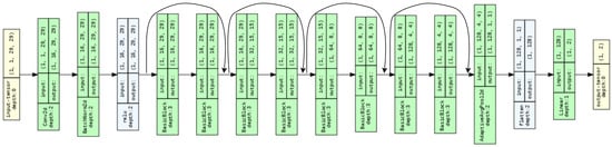Building on our previous work [6], the proposed model in this study uses only CAN IDs as features. In particular, we stacked a series of continuous CAN IDs represented in binary format to form a matrix that captures the temporal and spatial structure of the CAN ID sequence. This CAN IDs matrix is then fed into a convolutional neural network (CNN) for classification. To balance accuracy and computational efficiency, we designed a compact Resnet architecture, which is shown in detail in Figure 5. It is important to note that the primary goal of this study is to test the performance of the proposed framework CANPerFL. Therefore, we did not focus on feature engineering or apply a novel model architecture. Instead, we employed an efficient feature extraction method and a well-known deep learning model to streamline the process.
