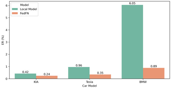 The comparison of ER (%) between local models and Fed-FN by different car models.