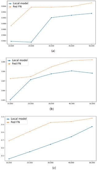 These models were trained, tuned, and tested with the number samples of data as shown in Table 3. During the training process, the stochastic gradient descent with momentum is used for optimization. We set the learning rate for local models as 0.05, and for federated learning as 0.005. After getting a model from a setting described above, the model runs through all test sets of the car models to produce local results, which are then averaged to obtain the final results for comparison.