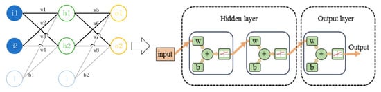 In the backpropagation, the overall error of groups of training sample data is shown in Equation (2). The gradient descent method is used to update the weight and deviation, and the updated weight and deviation are shown in Equations (3) and (4). Through the forward and backpropagation of errors, the weight and deviation of the neural network are constantly adjusted until a higher accuracy is achieved.