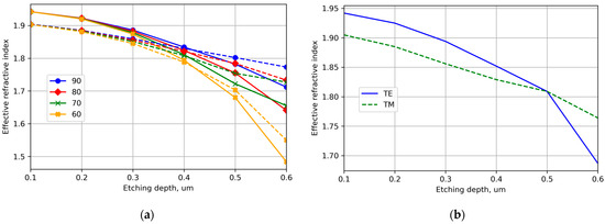 Moreover, at an etching depth of about 0.4 μm, the values of the effective refractive indexes of the TE and TM modes become almost the same, which means that inter-mode hybridization occurs.