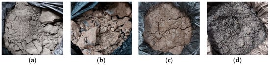 Figure 2. Appearance of each sludge: (a) WPS; (b) Sample A; (c) Sample B; and (d) Sample C.