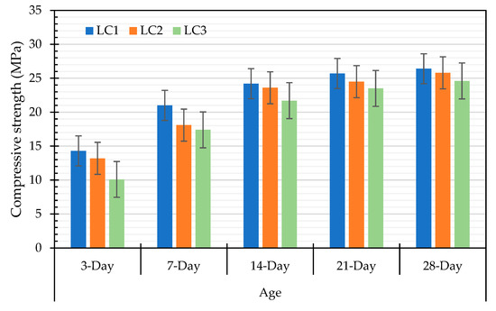 Figure 17. Compressive strength of the textile-sludge-based LWA concrete.