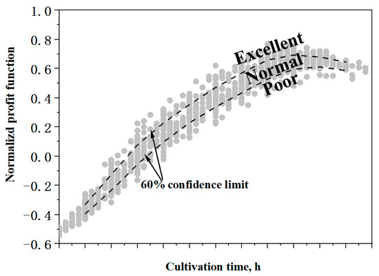 Based on a statistical analysis of the profit function, the fermentation batches can be classified into three categories: excellent, normal, and poor. For an online batch under consideration, the predicted profit function