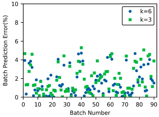 k = 6, the mean and standard deviation of the prediction error for these batches are 1.91% and 2.06%, respectively.