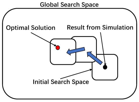 Iterative NSGA-II procedure; the search space starts with offline simulation and evolves within the global search space to arrive at the optimal solution.