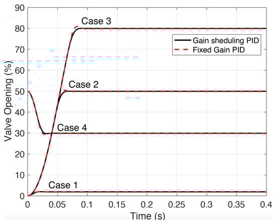 - Case 4: Step response from 50% to 30% opening