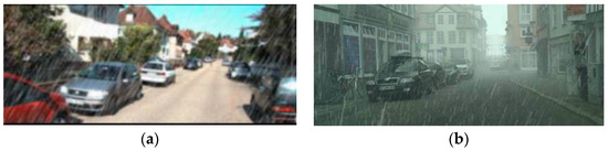 The established datasets of Cityscapes rainy and KITTI rainy. (a) KITTI rainy. (b) Cityscapes rainy.