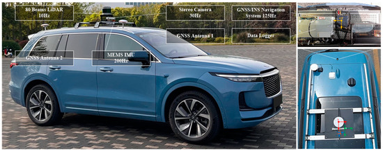 As shown in Figure 7, in order to validate the proposed algorithm, we built a physical testing platform, which includes an 80-beam LiDAR, an RTK positioning system, a stereo camera, and a set of data acquisition devices. We collected two small-scale datasets in urban residential areas and urban streets. All sensor data were collected via ROS and synchronized to the same timestamp. The proposed algorithm was tested on camera data, which were converted into the format of the COCO dataset.