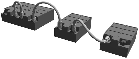 Synthetic example of interconnected battery modules using ECs and high-voltage cables. In the mounted state, the three cables result in different deformation shapes.