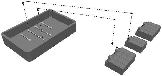 The wrenches induced by the cable on the plugs exert at the CCI, to which surface pairs 3 and 4 are closer than surface pairs 1 and 2. Inspired by [36], the cables are provided in a load carrier. Specifically, three high-voltage cables are used with the plug shown in Figure 7. A plug is attached to the cable. The three cables shall connect four battery modules in series. An overview of the reference scenario is shown in Figure 8a.