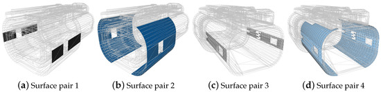 Four different surface pairs of a high-voltage plug generated from its CAD data; compare Figure 5. Surface pairs 1 and 3 have planar surfaces, whereas surface pairs 2 and 4 result in NSCs with the gripper jaws.