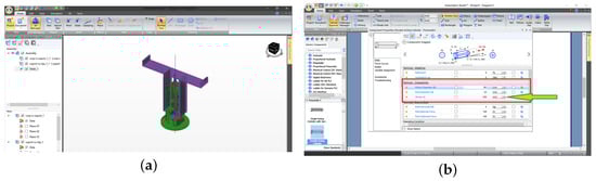 The 3D model is changed into a simulation model as the first step towards obtaining a digital twin. To accomplish this, 3D models (with an .igs extension) must be imported into the AS—3D workshop. After, it is necessary to define the required rigid and collision bodies and create the type of displacement for each joint—Figure 6a.