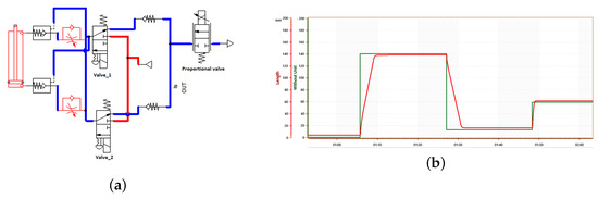 The cylinder (U/D) for two approaches: (a) the pneumatic diagram for positioning cylinder in AS; and (b) displacement of cylinder for different position references.