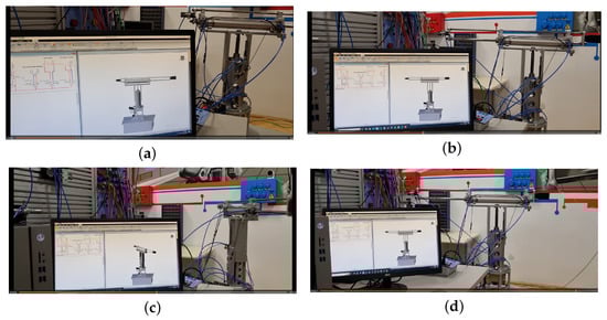 Figure 10 captures snapshots at various moments during the execution of the working scenario, with the real robot in the background and its digital twin displayed on the monitor in the foreground. These snapshots provide a visual comparison of the robot’s behaviour and the digital twin’s performance throughout the scenario, further highlighting the accuracy and effectiveness of the digital twin in replicating the real system.