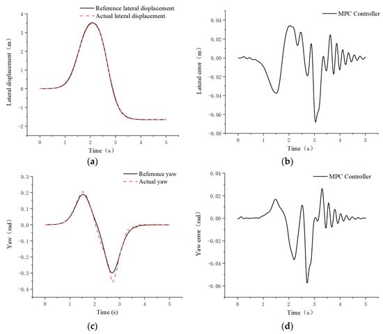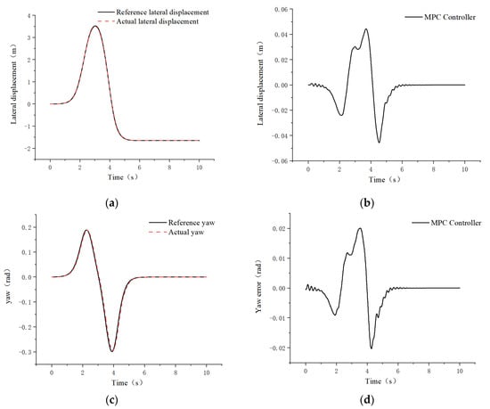 In the case of avoidance, the controller, in the process of solving the step signal, causes the vehicle to be in the trajectory tracking driving process of dangerous conditions; this needs certain constraints to be added on the vehicle state, such as Equation (18):