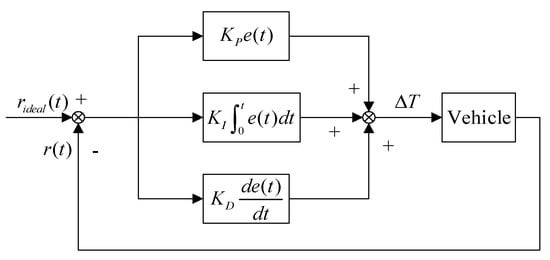 In Equation (25), KP is the ratio element, KI is the integral element, KD is the differential element, ΔT is the additional yaw moment, and e(t) is the yaw rate difference.