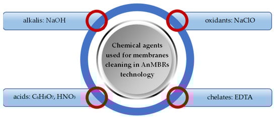 Chemical agents used for membrane cleaning in AnMBRs technology applied for the treatment of municipal and domestic wastewater.