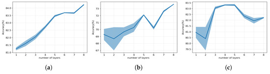 Effect of the number of layers. (a) Cora; (b) Citeseer; (c) Pubmed.