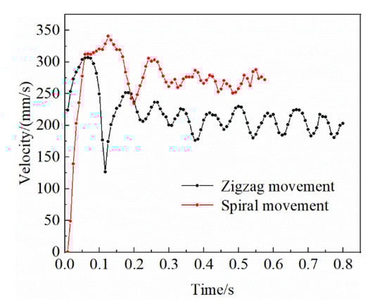 Velocity comparison between zigzag and spiral movements of bubbles.
