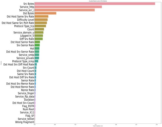 As seen in Figure 8, where Src Bytes is the most significant feature, 38 features were retrieved from the original 138 features. Therefore, the other characteristics were eliminated from the dataset after these features had been utilized for training the models.