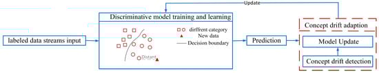 The general process of concept drift adaptation methods based on discriminant learning.
