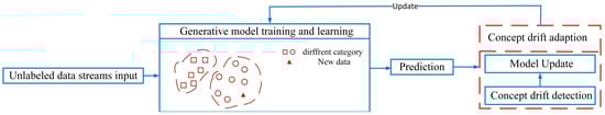 The general process of concept drift adaptation methods based on generative learning.