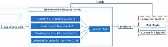 The general process of concept drift adaptation methods based on hybrid learning.