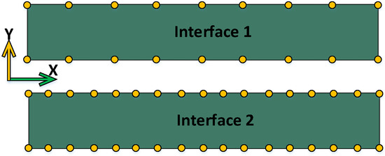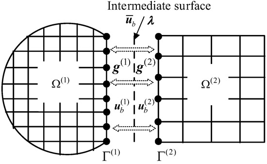 As stated above, Equation (15) already satisfies displacement compatibility. However, the equivalent system of forces on the intermediate surface is not guaranteed, and an additional condition has to be introduced that is based on the conservation of energy through the interface [26,32].
