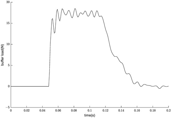 According to Chen [15], we obtain the buffer loads acting on the center body. Take the longitudinal (X direction) buffer load generated from the Z-direction main strut, for instance [13]; its time history is shown in Figure 12.