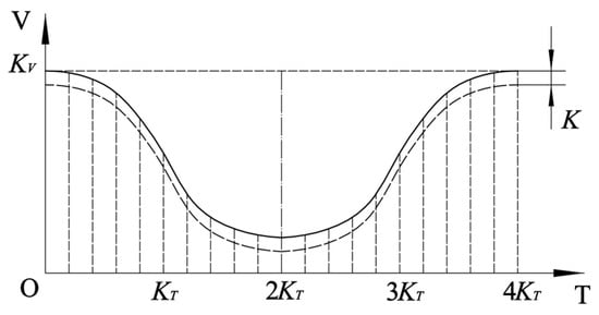 where is time adjustment parameter that controls the range of the independent variable interval, which is equal to 0.25 times the variable speed time; is the velocity adjustment parameter that controls the range of the dependent variable interval, which is equal to the initial velocity of the variable speed stage; is acceleration adjustment parameter that controls the slope of the sigmoid deformation curve, which is solved by Equations (24) and (25); The constant term represents the difference between the actual velocity and the initial and final velocity of the sigmoid deformation curve.